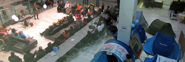 La tancada va començar el dijous 29 de novembre al matí, quan uns 200 treballadors començaren la protesta, instal·lats amb tendes al vestíbul de l'hospital, i ha acabant essent una protesta també dels i les veïnes que han vist retallat el servei sanitari públic i han mostrat el seu suport assistint a les nombroses activitats organitzades. Igualment, ha esdevingiut un centre de trobada i de difusió d'altres lluites i mobilitzacions laborals i socials de Barcelona. S'hi han fet actes explciant la lluita dels treballadors de TMB, de denúncia de la repressió dels Mossos exposant el cas de l'Ester Quintana i les bales de goma; xerrades de Teresa Forcades, dels treballadors de Telefònica en lluita, cinefòrums, i fins i tot concerts d'òpera de músics que han volgut donar el seu suport a la lluita. La tancada ha rebut el suport de les organitzacions i col·lectius de l'esquerra de Barcelona, entre ells les de diverses assemblees de barri i d'organitzacions de l'esquerra independentista com la CUP i Endavant OSAN, que hi realitzaren algunes de les seves assemblles.