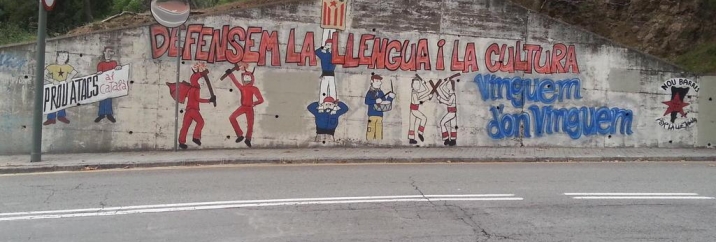 Quatre persones veïnes de Nou Barris han estat multades per l’Ajuntament de Barcelona amb quantitats d’entre els 375 i 500 euros. El motiu és la voluntat veïnal de mantenir un mural, d’uns deu anys d’antiguitat, en defensa de la llengua i la cultura popular catalanes, assetjades a causa del procés d’imposició colonial que patim des de fa segles, i, en l’actualitat, amb més vigència que mai per les darreres imposicions lingüicides al món escolar de l’actual ministre de l’Estat espanyol José Ignacio Wert.